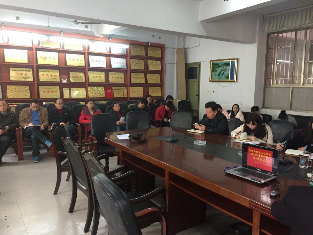 (通讯员:刘景春)34日上午1130分,公司在第三教学楼三楼会议室召开了“2018年春季开学工作会议”。经理彭金璋、党委书记熊文斌、党委副书记程安垣、经理助理孙晶、黄勇刚及全院教职工参加了本次会议。