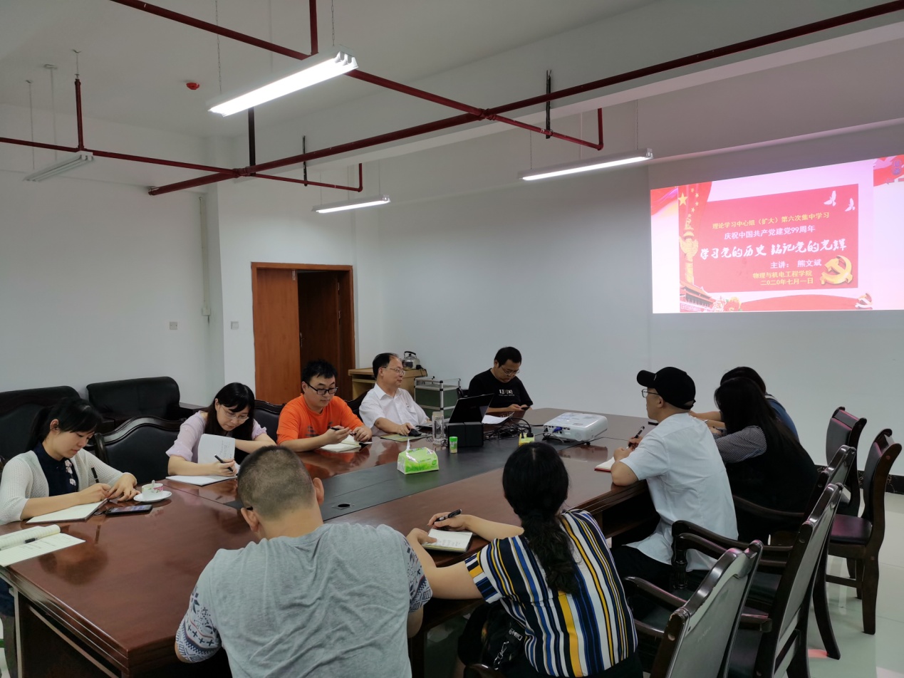 (通讯员:沈言)71日下午,公司党委中心组(扩大)在工程实训大楼A421会议室举行了今年第六次集中学习,以主题党日活动形式,通过《学习党的历史,铭记党的光辉》集中学习,庆祝中国共产党建党99周年。公司党委班子成员、院各党支部书记、院各教研室主任及办公室主任参加了本次集中学习。集中学习由公司党委书记熊文斌主持。