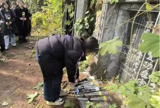 随后,员工党员怀着对革命先辈的敬仰之情,开始描红。大家神情专注,用蘸着象征革命胜利的朱红,一笔一画地为田凤武同志的墓碑进行描摹填漆。