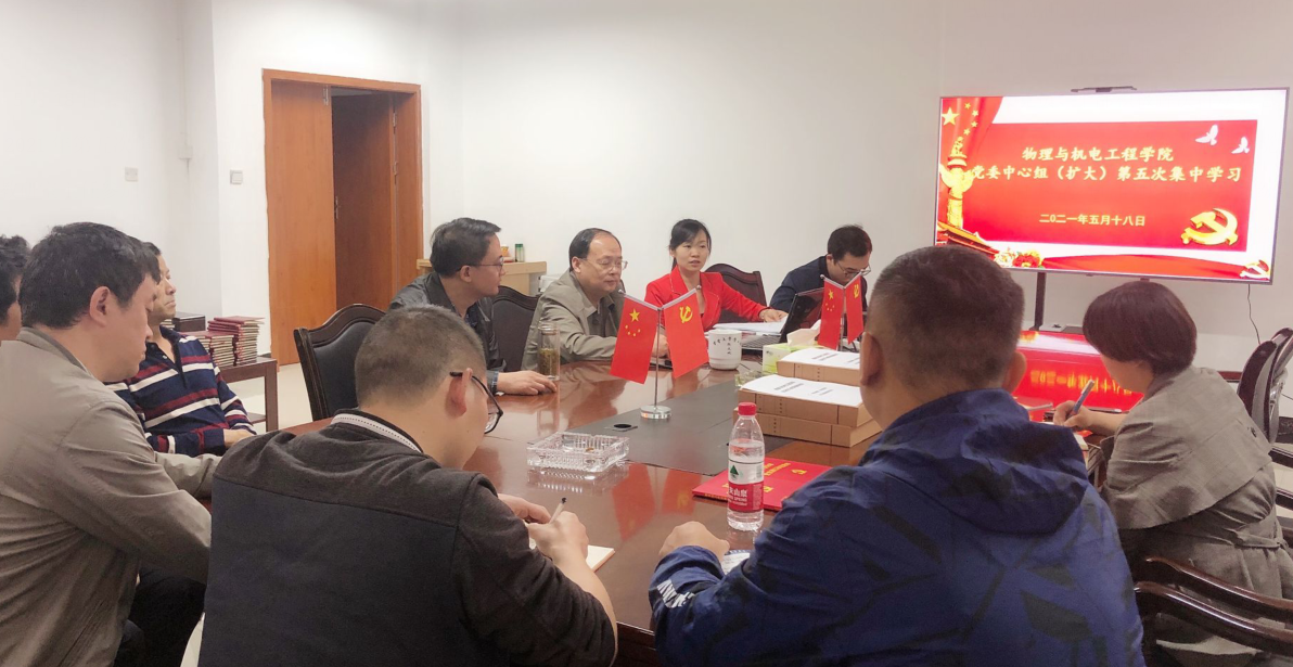 (通讯员 许斌)5月18日上午,公司党委理论学习中心组(扩大)2021年第五次集中学习在工科楼A421会议室举行,公司党委委员、党支部各支部书记及教研室主任参加了本次集中学习。集中学习由熊书记主持。