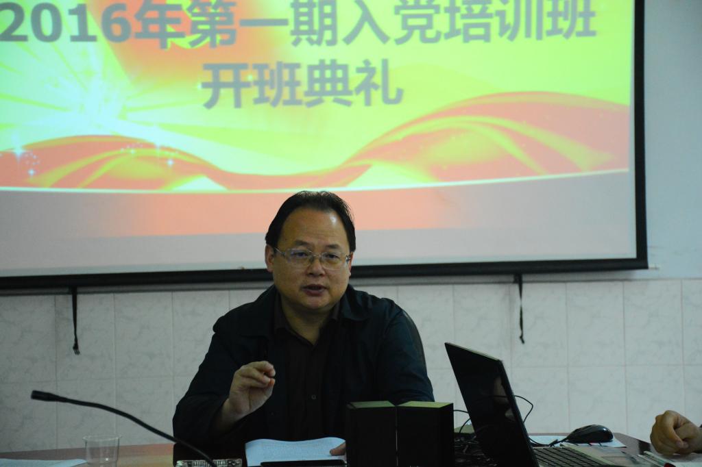 (本报讯:毛国明)5月8日上午9点,在沙子坳校区布达拉宫三楼会议室,伟德官网迎来了2016年第一期入党培训课,参与此次开班典礼的有熊文斌书记、14级辅导员朱姗姗老师、石维海老党员和伟德官网各个年级的入党积极份子。