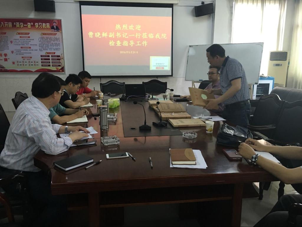 曹书记首先指出了这次检查的目的和意义,院总支副书记熊文斌老师介绍了公司党建工作情况,特别是是公司在“三严三实”教育活动、“两学一做”学习教育工作、“三个专项整治”工作及党员发展工作,李景军和王伟老师抽查了相关材料并反馈了存在的不足。