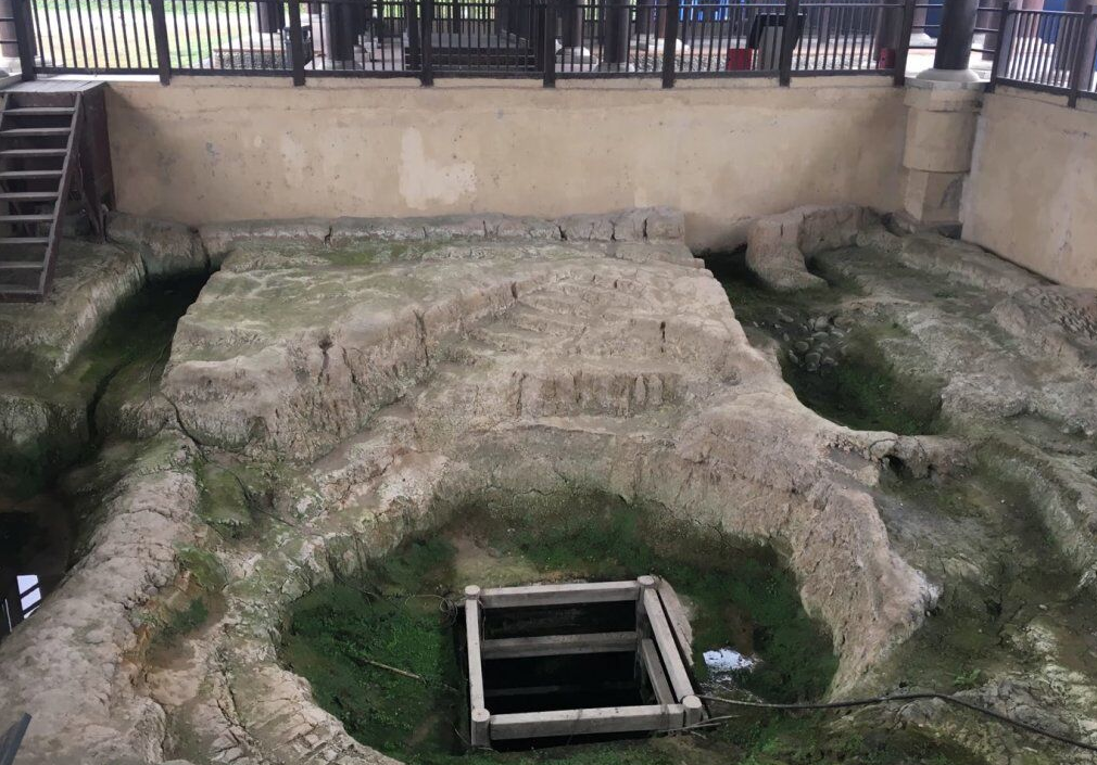 进入古城遗址后,导游重点给大家介绍了具有“中华第一井”称号的古城一号井,该井结构十分讲究,它使用43层榫卯结构依层叠砌,并封存了三万多枚秦简牍,共计20余万字。