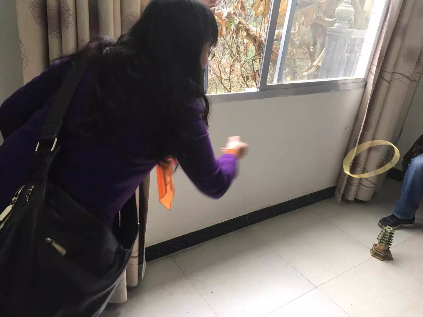 比赛第二项,蒙眼作画。所有的女教师蒙上眼睛,用A4纸统一画一幅画,看谁画的最接近原图。
