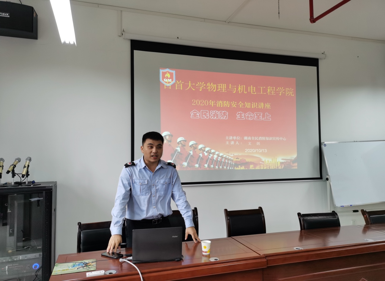 (通讯员:沈言)10月13日下午,公司邀请湖南省全民消防知识宣传中心文剑特级教官在工程实训大楼a416会议室为全体教职工做了一场消防安全宣传教育报告会。会议由公司党委书记熊文斌主持,公司50余人参加了报告会