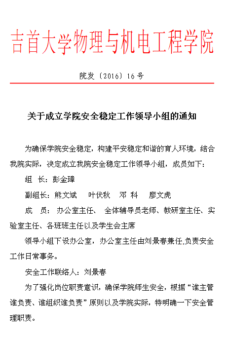 院发[2016]16号--关于成立公司安全稳定工作领导小组的通知