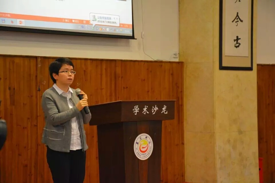 图为 蔡飞燕教授在研讨会上讲学