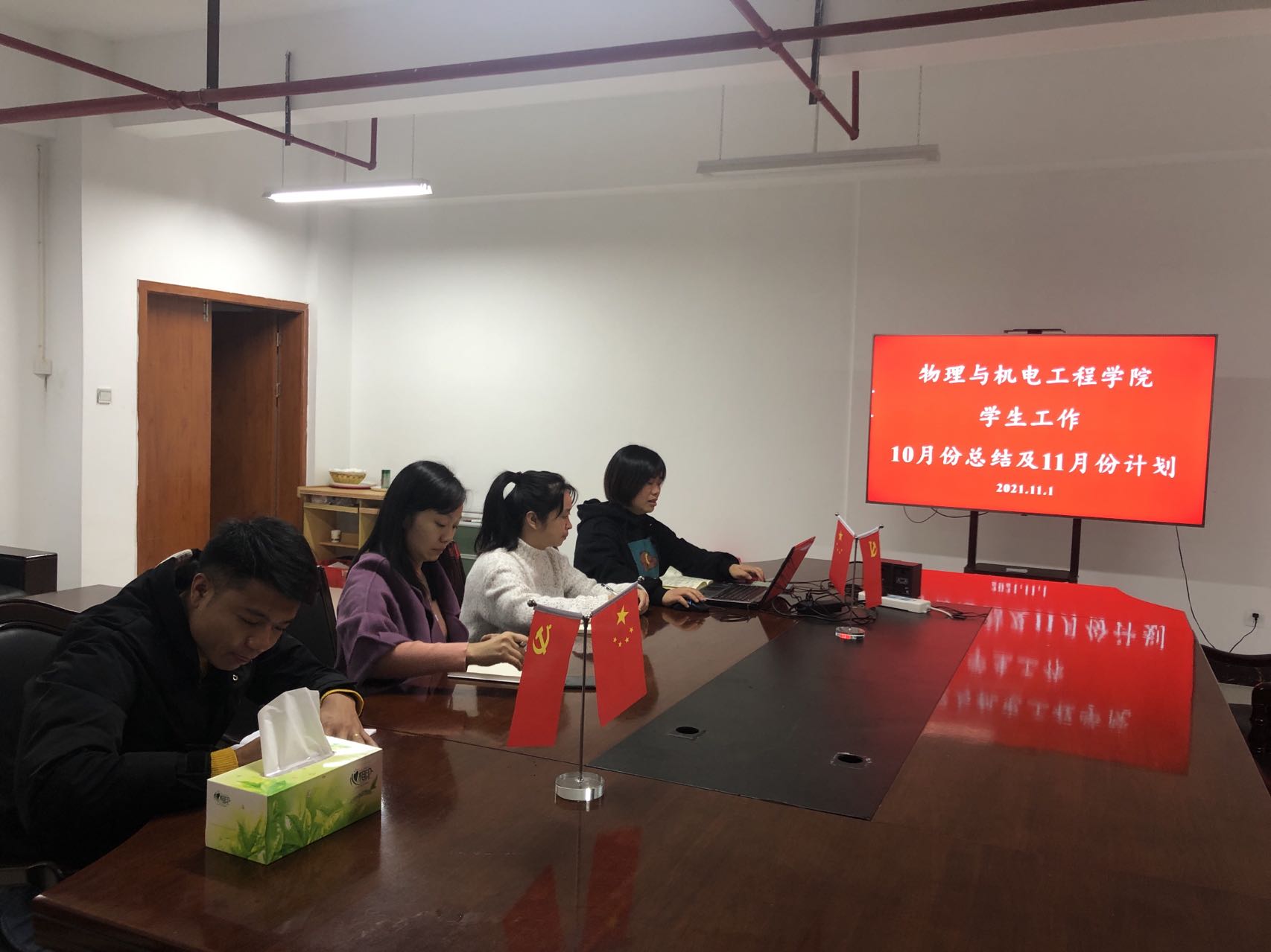 11月1日上午,公司在第十二教学楼A421会议室召开了10月员工工作总结暨11月工作计划会议。公司党委副书记许斌、学工办主任朱姗姗、团委副书记谭艳文、辅导员袁强参加会议。