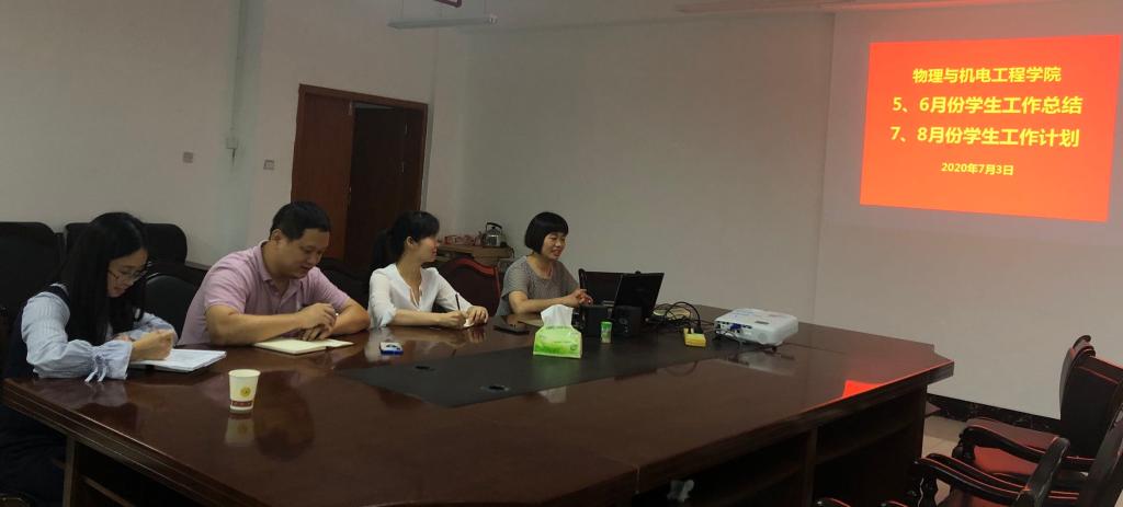 会议开始,学工办主任朱姗姗从员工管理、员工党员教育、毕业生就业、资助育人、团学工作、心理健康教育、少数民族员工管理、宣传、武装工作及辅导员队伍建设等方面总结了公司五、六月的员工工作,同时也从这些方面对公司七、八月的员工工作进行了部署。