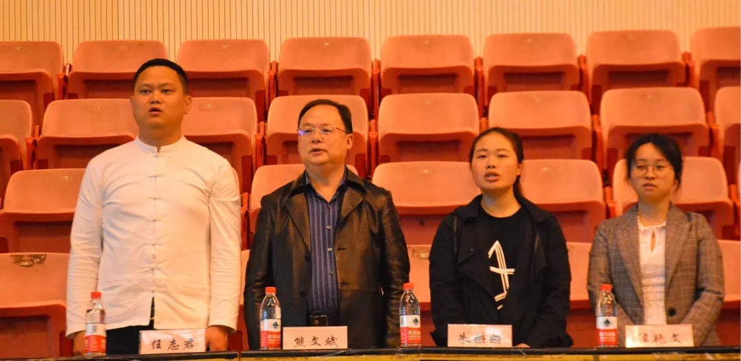 图为 全体起立奏唱国歌