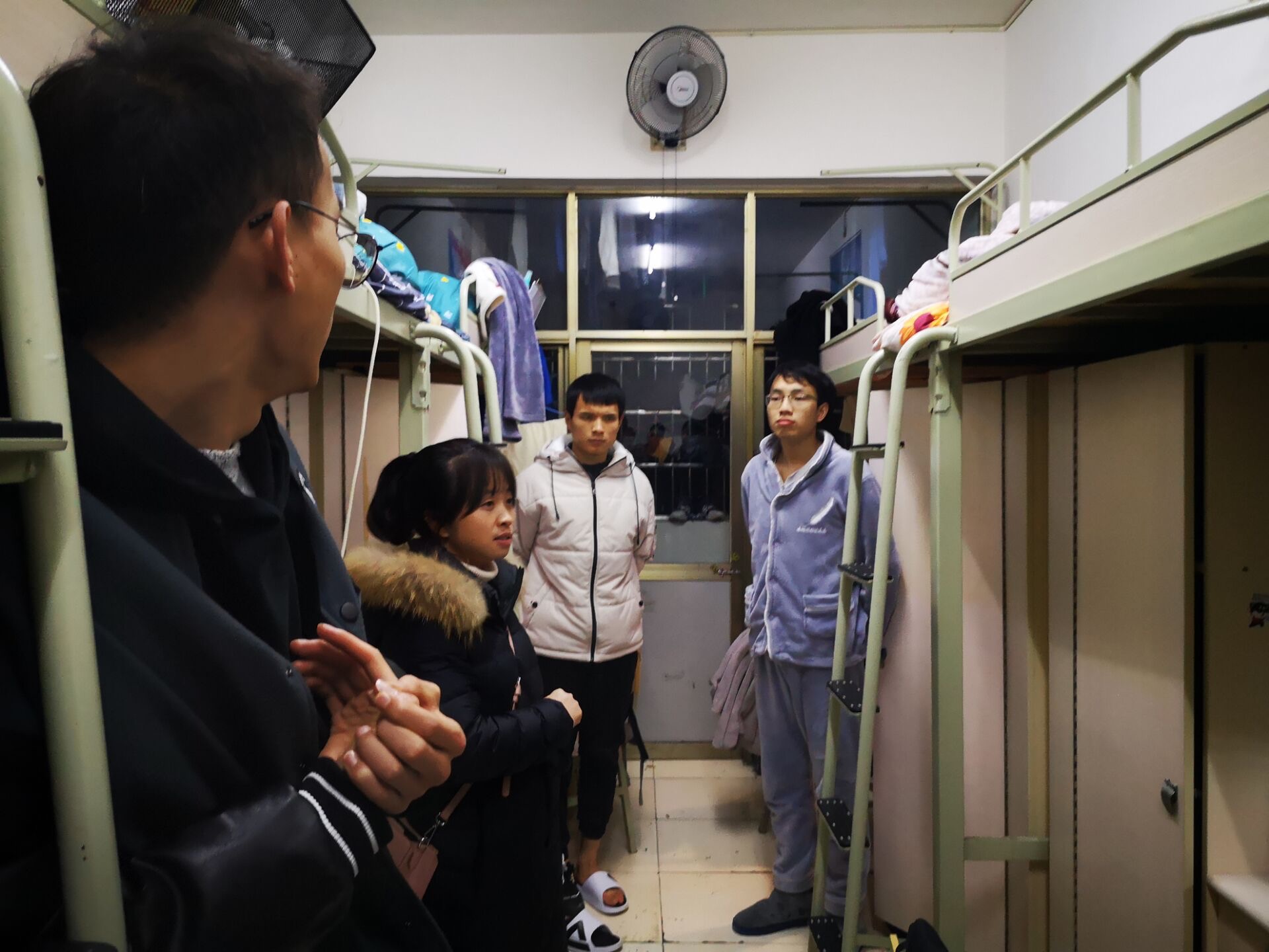 各个老师深入每一间员工宿舍,就严禁使用违禁电器、注意保护人身和财产安全等宿舍安全问题、期末诚信考试及文明使用互联网等问题逐一进行了强调。随后,老师们还耐心细致地与同学们进行交流,叮嘱同学们要注意休息和防护,认真复习,给即将结束的学期交上一份满意的答卷。