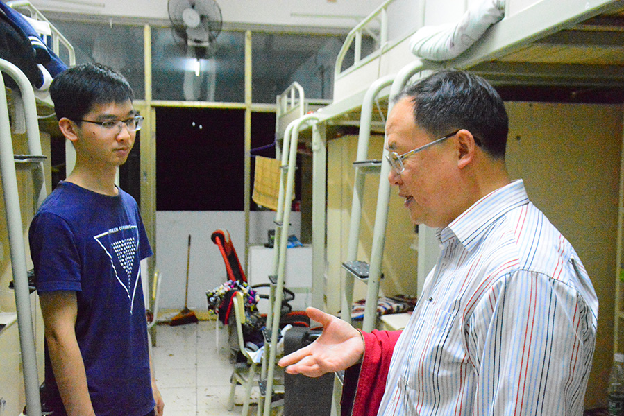 下寝的重点是关心了解公司大四学子们的毕业准备情况。每到一个寝室老师们都会与同学们亲切交谈。老师们仔细询问了每位同学毕业论文的完成状况和毕业答辩的准备情况。程安垣书记还特别提到大家要多学东西,自立起来,不要总是依靠父母。在工作方面可以多结合父母的建议,不管怎么说至少要能养活自己。熊文斌书记则则提醒大家注意饮食、合理分配,注意安全,希望大家都可以顺利毕业