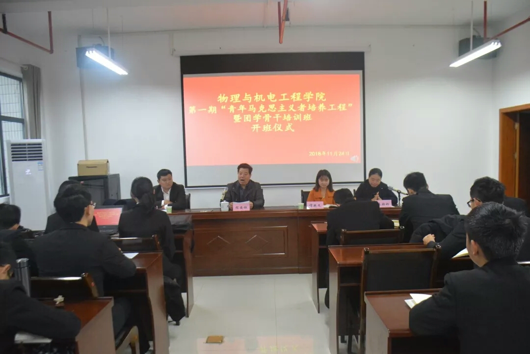 (通讯员:钱双双)11月24日上午8:30,伟德官网“青年马克思主义者培训工程”暨团学会骨干培训班开班仪式在工科大楼A416会议室正式举行。参加本次培训的人员有公司党委副书记程安垣,学工办主任朱姗姗,团总支书记任志君,辅导员谭艳文及89名员工干部。