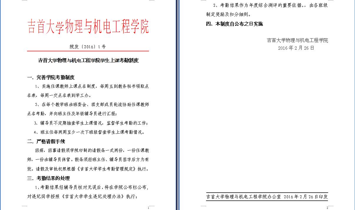 院发[2016]1号--伟德官网员工上课考勤制度