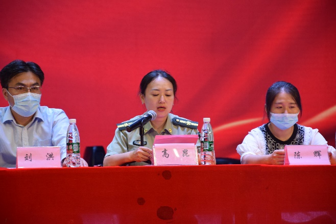 图为 学工办主任朱姗姗宣读2022级新生军训表彰文件