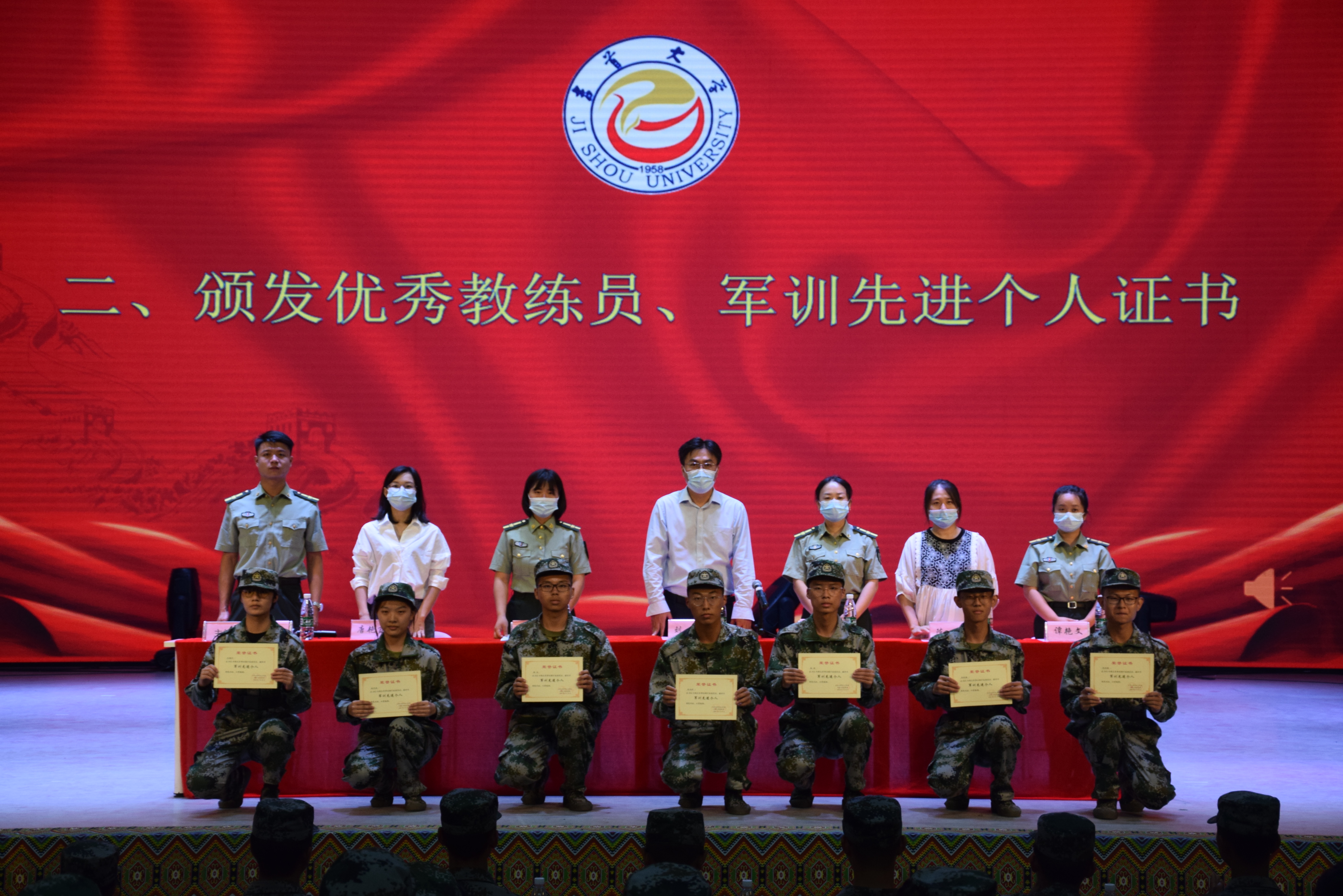 首先,学工办主任朱姗姗宣读2022级新生军训表彰文件,参会领导老师为2022级军训13名优秀教练员及2022年度退役教官(2019级电子信息科学与技术班陈琳)颁发纪念品、为80名优秀学员颁发荣誉证书。