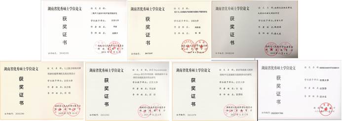 从2007年起共招收硕士研究生218人,目前已有100多人毕业并获取学位。近年来,7人获得湖南省优秀硕士论文(占全校省优论文数的12.5%,占全校理工科省优论文数的27%),多人被评为湖南省优秀毕业研究生。毕业生学科基础扎实、综合素质突出,科研能力和创新意识深受用人单位青睐。2020年以来,毕业生继续攻读博士学位9人(占比约11%),高校工作8人(占比约10%),重点中学21人(占比约26%)。