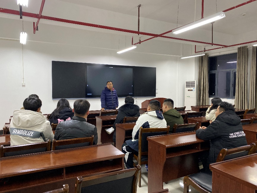 许斌副书记宣读《伟德官网2020年冬季安全教育承诺书》,从疫情防控安全、宿舍用电安全、人身财产安全等多方面对同学提出要求。