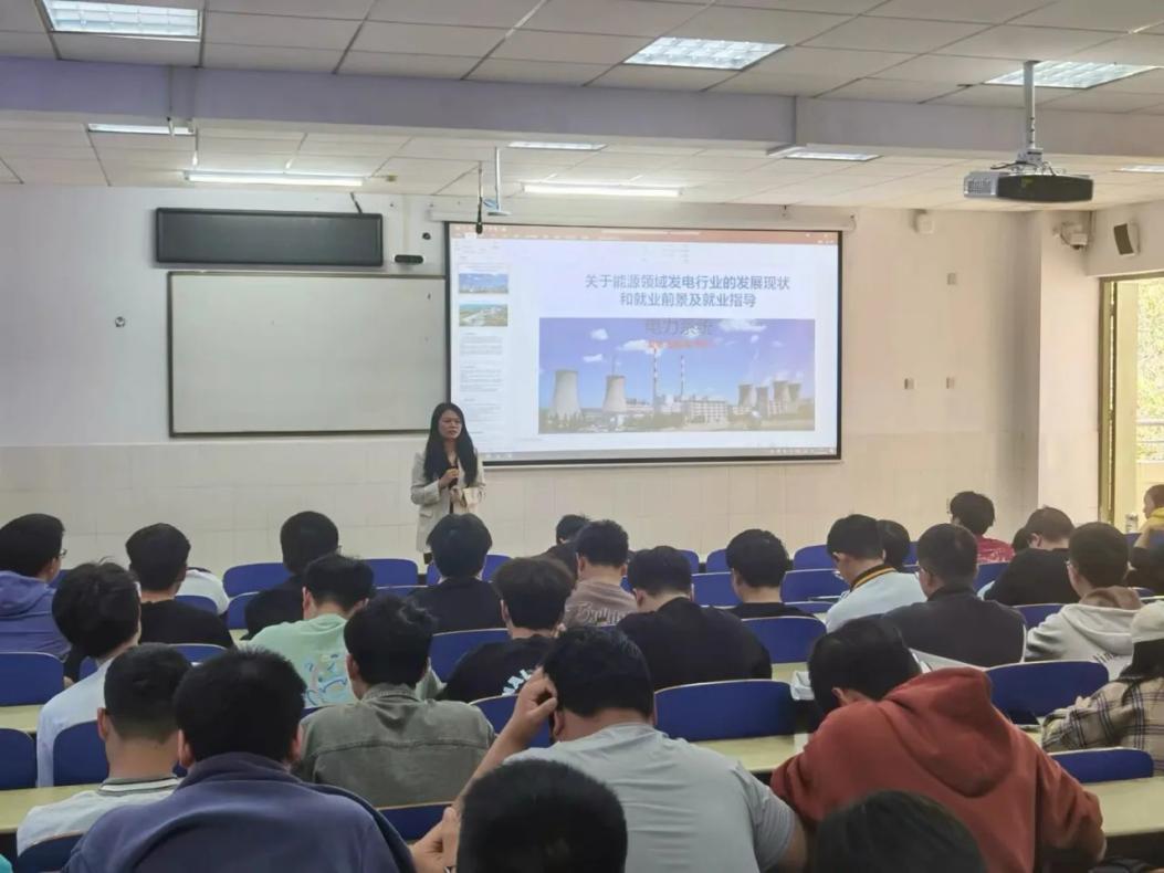 (通讯员:刘希萌)规划赋能锚定青春坐标,就业领航开启逐梦新程。3月25日下午14:30,公司在砂子坳校区第六教学楼成功举办“电力行业职业发展与规划”主题讲座。活动面向机械设计制造及其自动化、机械电子工程、材料科学与工程等专业员工,吸引近200名学子参与,通过行业前沿洞察与职业规划实践双轨并进,为学子点亮职业发展灯塔。